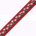 Rød med hvitt og metallisk turkis og gull. Bredde 5 mm.