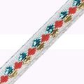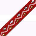 Rød, med metallisk turkis, hvit og sølv. Bredde 6 mm.